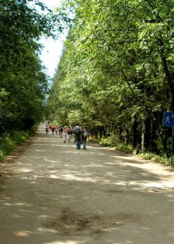 Szosa do Morskiego Oka, od której przy Wodogrzmotach Mickiewicza odchodzą szlaki: